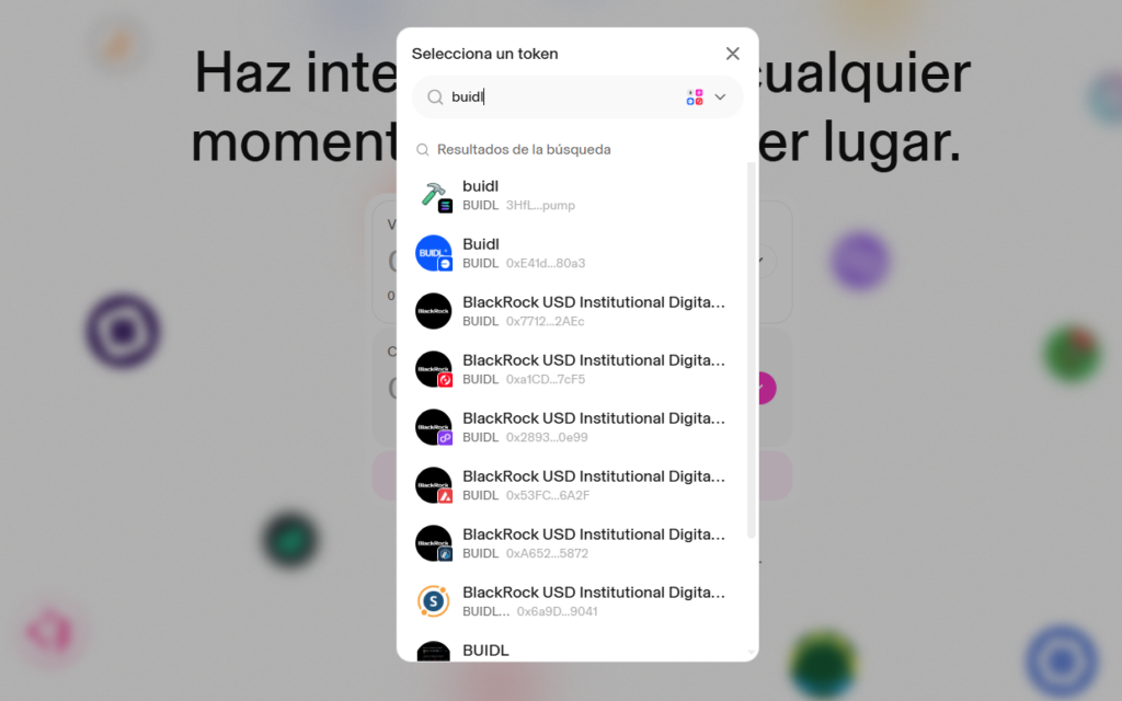 KriptoNoticias pudo comprobar que, al momento de esta publicación, no se encuentra el verdadero fondo BUIDL disponible en Uniswap para el público masivo (aunque sí hay varios tokens que llevan ese nombre, que enada tienen que ver con el original).
